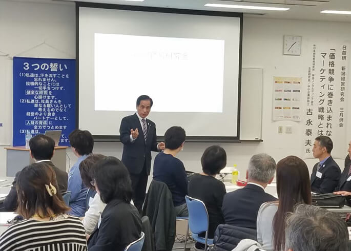 私事で恐縮ではございますが、新潟全国大会前に入会いたしました。諸先輩の会社のように業績も良くなく、日々売上を漠然と集め、いつ崩壊してもおかしくない状況でした。そんな自分でも、こうして毎年会社も自分も社員さんも成長できているのも、新潟経営研究会の仲間から𠮟咤激励いただき、諸先輩方の良い部分を取り入れていっただけのことです。